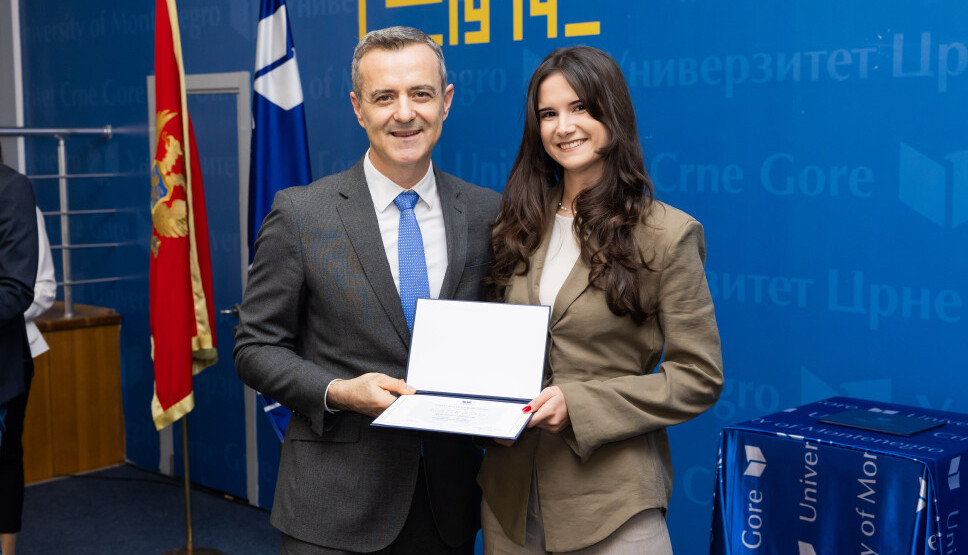 Na svečanosti održanoj u Rektoratu Univerziteta Crne Gore, Aleksandra Pavicević je nagrađena titulom najboljeg studenta za akademsku 2025/2026. godinu. Ova mlada arhitektica iz Podgorice je istakla da je Arhitektonski fakultet bio pravi izbor za nju, dodajući da bi, da može ponovo da bira, ponovno izabrala isti put.
