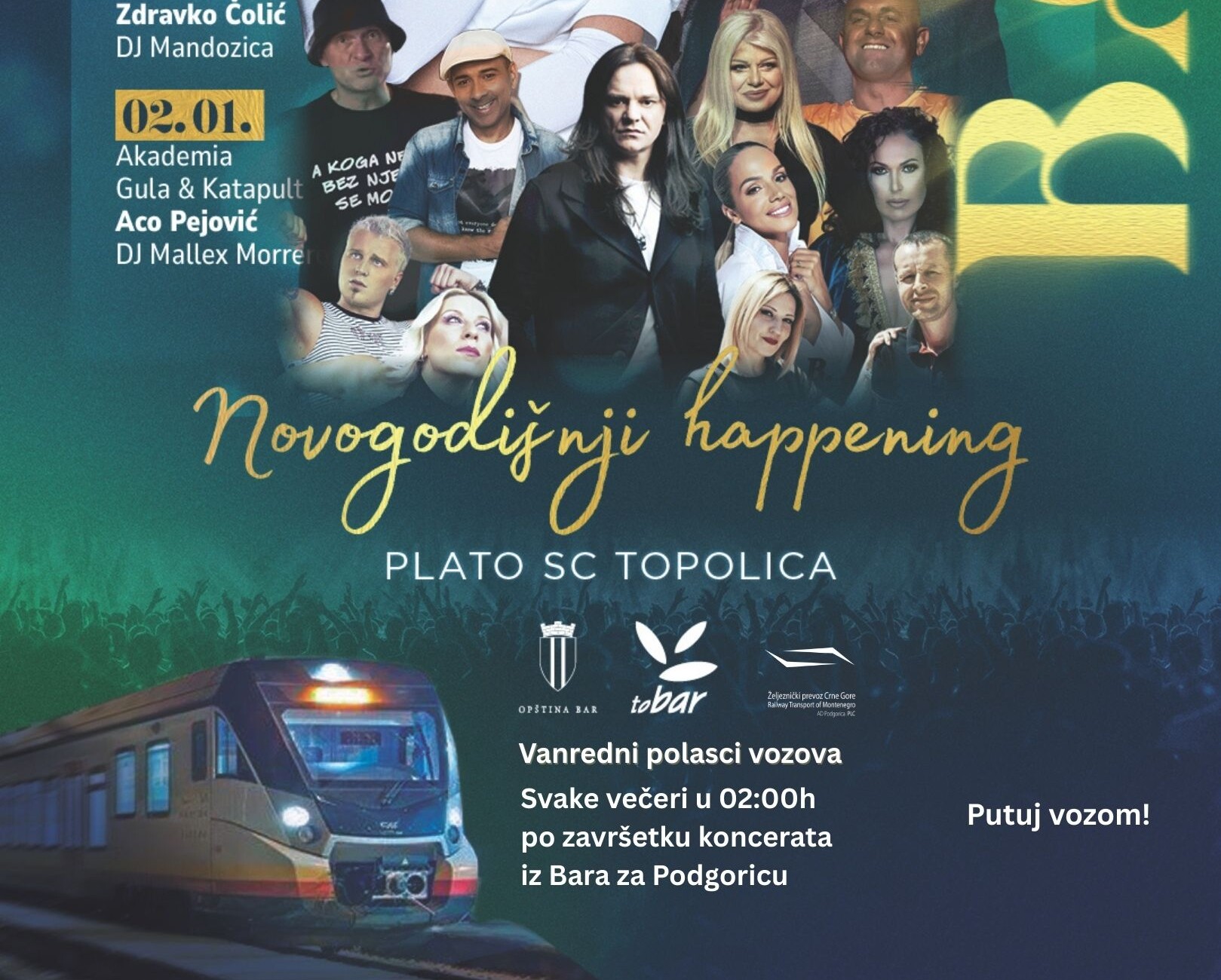 Bar će ove godine ponovo biti središte novogodišnjih dešavanja, sa bogatim muzičkim programom i vanrednim noćnim vozovima. Željeznički prevoz Crne Gore obezbijedio je siguran povratak za sve posjetioce koncerata.
