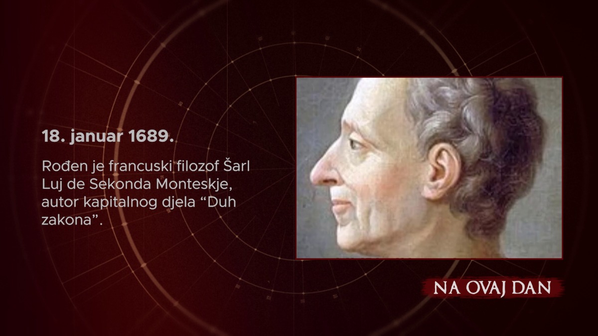 Danas, 18. januara, prisjećamo se rođenja francuskog filozofa Šarla Luja de Sekonde Monteskjea, koji je 1689. godine otvorio vrata novim idejama o podjeli vlasti. Njegovo kapitalno djelo 'Duh zakona' postavilo je temelje modernoj parlamentarnog demokratiji, naglašavajući potrebu za balansiranjem između zakonodavne, izvršne i sudske vlasti.