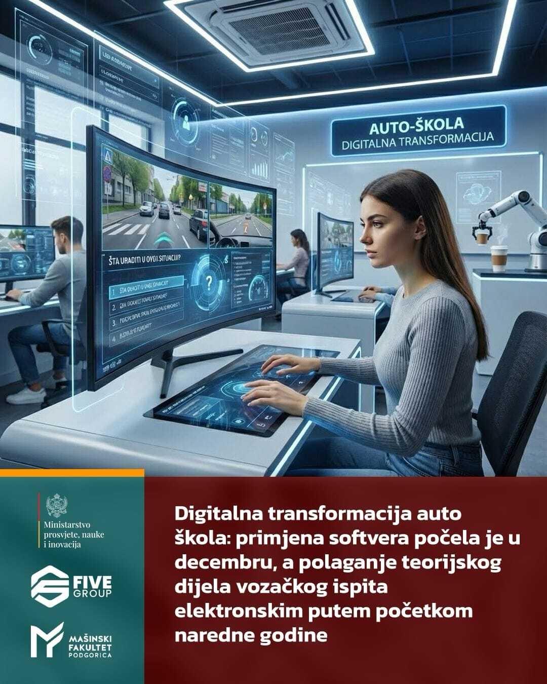 Digitalna transformacija rada auto-škola u Crnoj Gori ulazi u završnu fazu. Ministarstvo prosvjete, nauke i inovacija, u saradnji sa Mašinskim fakultetom Univerziteta Crne Gore i Five grupom, radi na unapređenju ovog važnog sektora. Ovaj korak ima za cilj da modernizuje procese i učini ih dostupnijim svima.