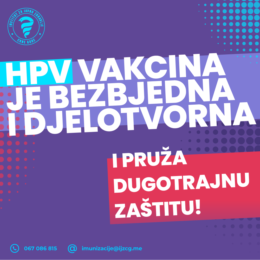 Institut za javno zdravlje Crne Gore (IJZCG) obavještava roditelje da su do kraja godine dostupni dodatni termini za vakcinaciju protiv HPV-a. Ova vakcina je posebno preporučena za djecu oba pola uzrasta od 9 do 14 godina, kada pruža najefikasniju zaštitu.
