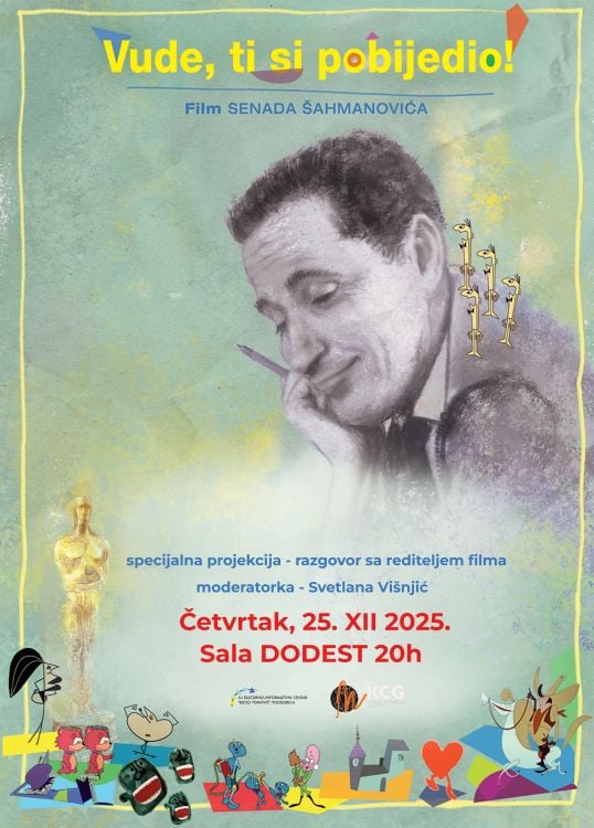 U četvrtak, 25. decembra, u sali DODEST KIC-a, biće prikazan dokumentarni film 'Vude, ti si pobijedio!' reditelja Senada Šahmanovića. Ovaj film donosi priču o Dušanu Vukotiću, jedinome crnogorskom laureatu Oskara i nezaboravnoj ličnosti u jugoslovenskoj kulturnoj istoriji.