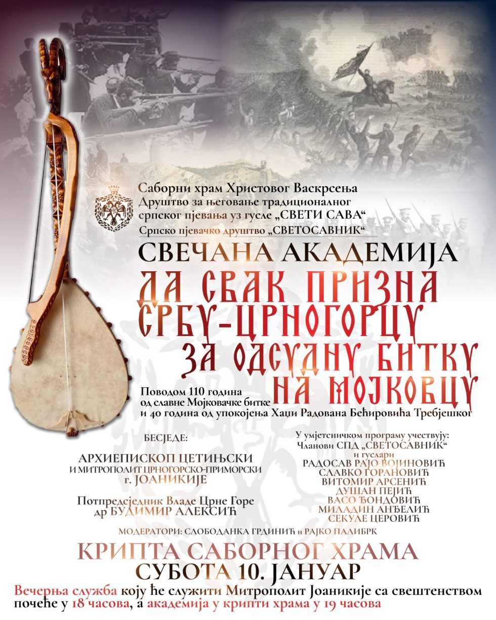 Na dan 10. januara 2026. godine, u kripti Sabornog hrama Hristovog Vaskrsenja u Podgorici, biće upriličena svečana akademija povodom obilježavanja 110 godina od Mojkovčke bitke. Ovaj događaj nosi naziv „Da svak prizna Srbinu-Crnogorcu, za odsudnu bitku na Mojkovcu“, a služi da odamo počast herojima koji su se borili za slobodu.