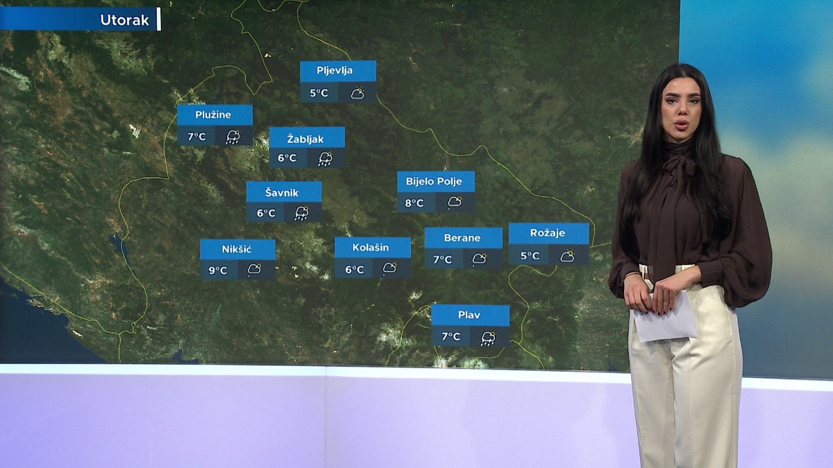 Danas će u Crnoj Gori prevladavati oblačno vrijeme, sa mogućnošću slabe kiše u drugom dijelu dana. Na sjeveru, uslovi će biti promjenljivi, ali veći dio dana će proći suvo, dok poslijepodne može doći do mjestimične kiše.