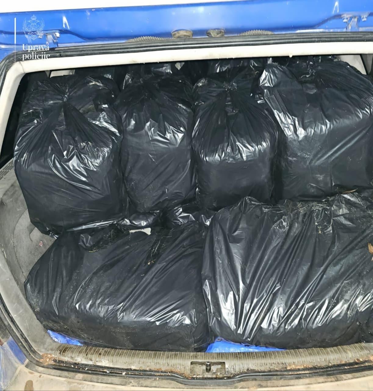 U jutarnjim satima, policija je u naselju Gošići, u opštini Cetinje, sprovela akciju koja je rezultirala hapšenjem A.P. (35) iz Tuzi. U njegovim kolima, beranskih registarskih oznaka, pronađeno je 17 kesa sa 510 manjih papirnih pakovanja, ukupne težine oko 255 kilograma rezanog duvana.