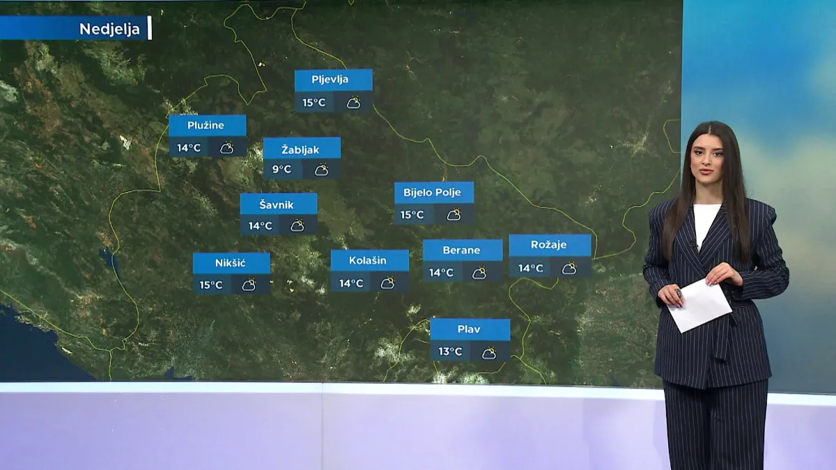 Danas se očekuje promjenljivo oblačno vrijeme sa sunčanim intervalima i najvišom temperaturom do 18 stepeni. Jutarnje temperature kretaće se od -2 do 11 stepeni uz mogućnu maglu u kotlinama, naročito na sjeveru. Vjetar slab do umjeren, promjenljivog smjera.