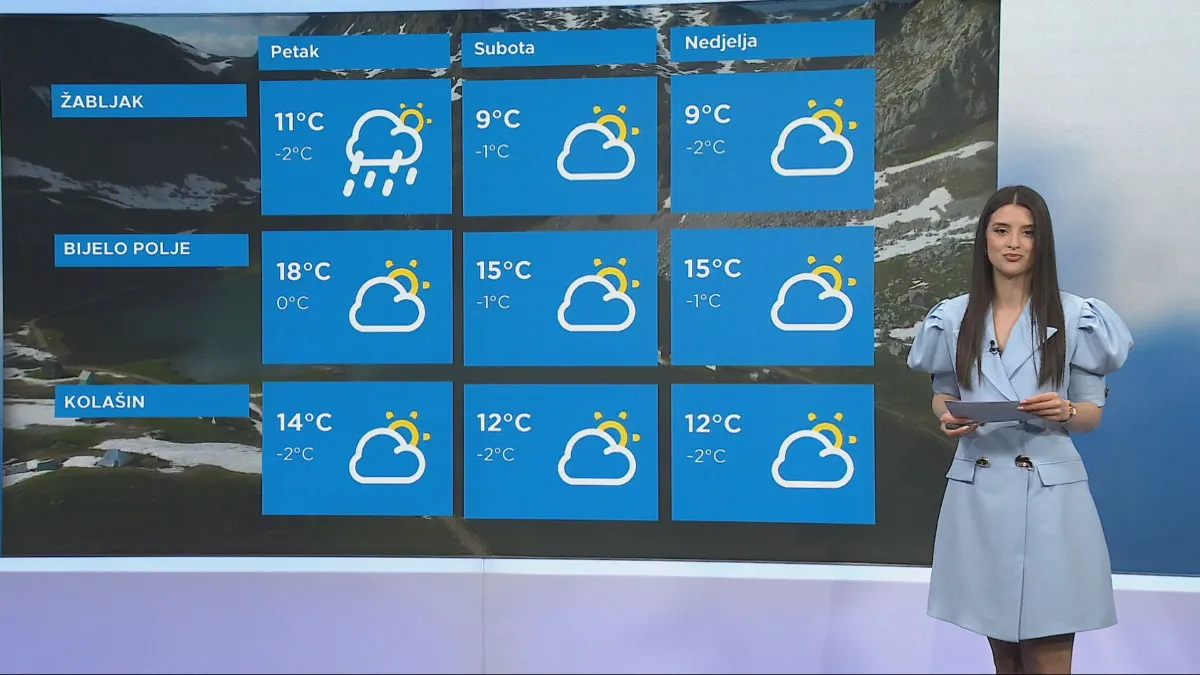 Sjutra se očekuje pretežno sunčano vrijeme sa mogućom kratkotrajnom kišom u poslijepodnevnim satima. Najviša temperatura vazduha biće između 11 i 20 stepeni.